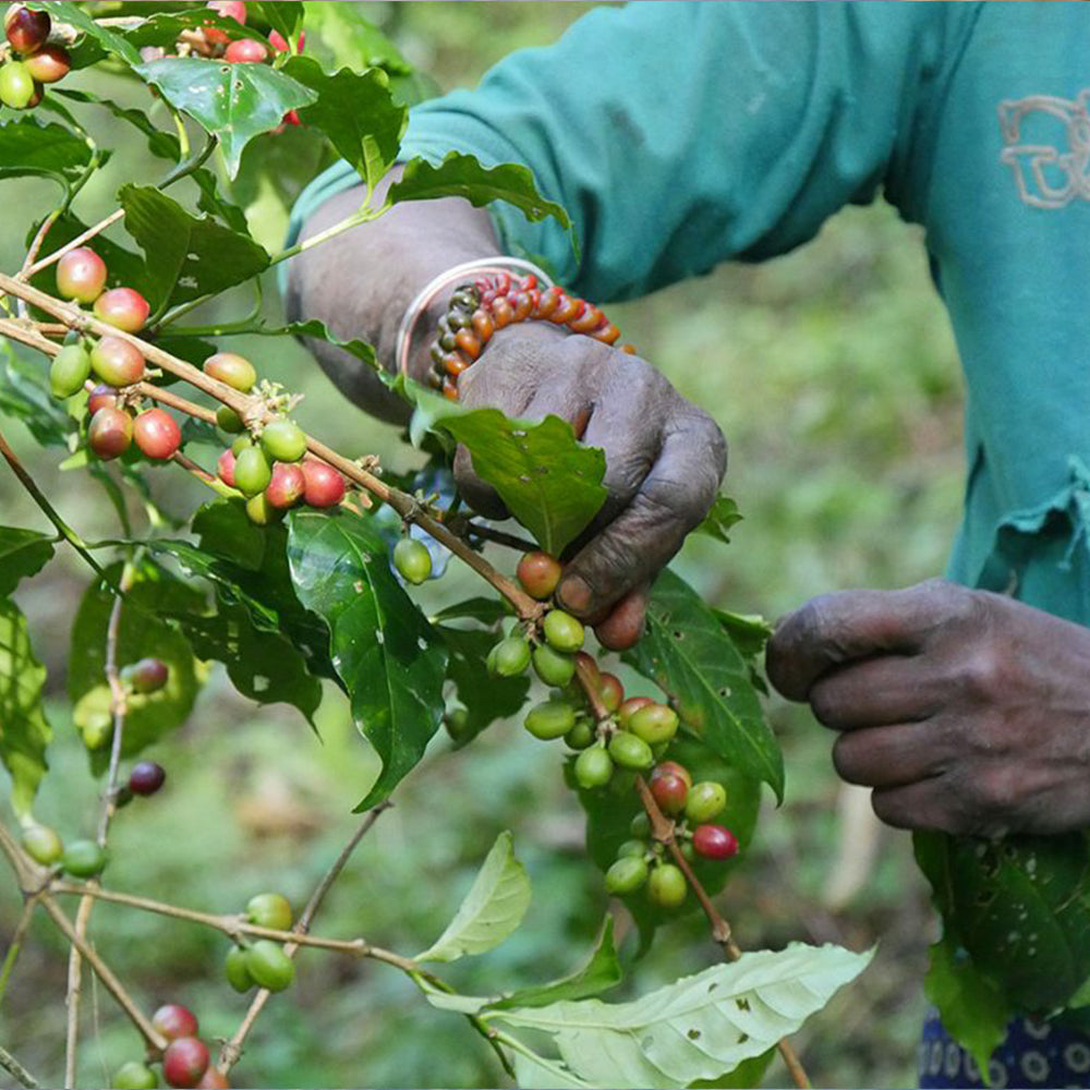 Wenn die Früchte ihre optimale Reife erreicht haben, werden sie sorgfältig von Hand gepflückt. Auf diese Weise stellen wir sicher, dass nur die besten Früchte weiterverarbeitet werden – für Kaffee in Premiumqualität.