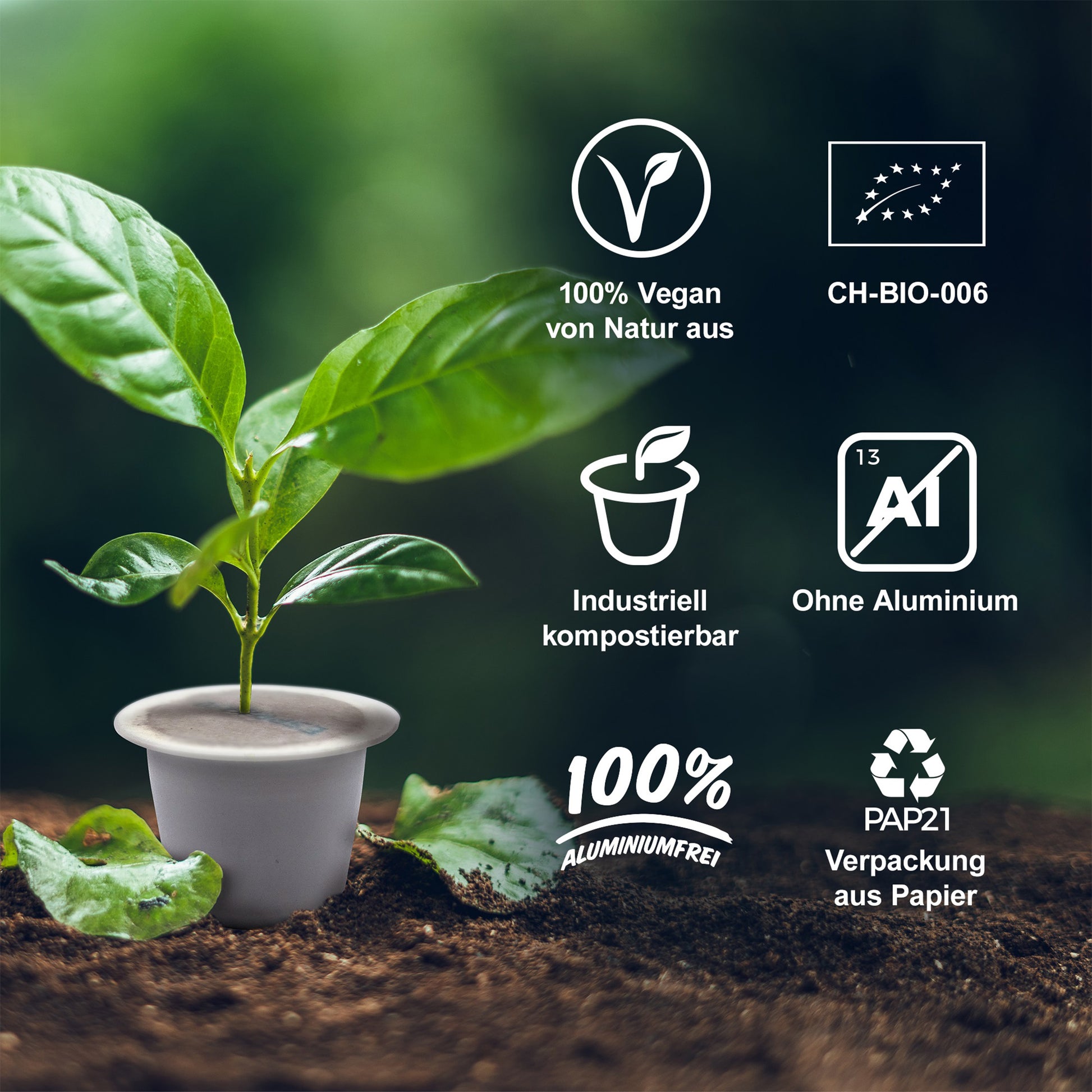 Die in unserem hochmodernen Werk hergestellten Teekapseln vereinen Komfort mit Umweltfreundlichkeit – damit du mit jeder Tasse unseres Premium-Tees nicht nur köstliche Aromen und Schweizer Qualität genießen kannst, sondern gleichzeitig etwas für die Umwelt tust.