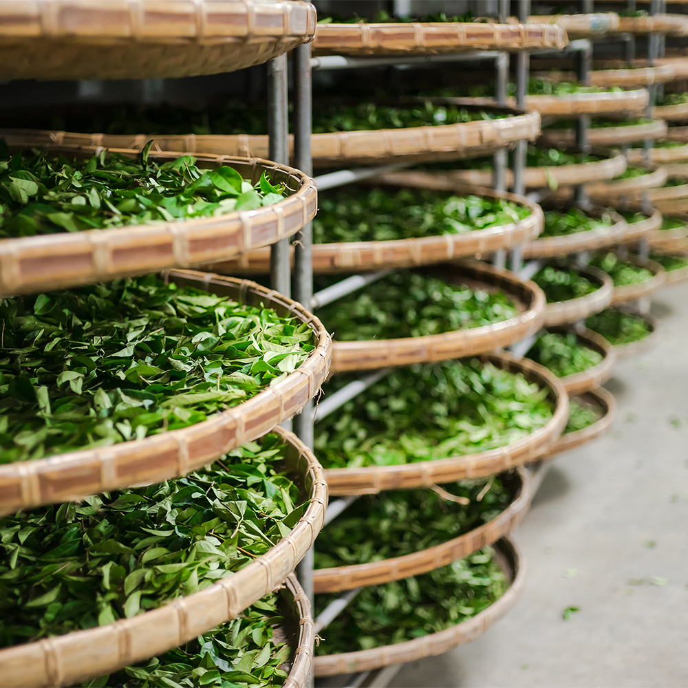 Nach der Ernte wird unser Tee in einem innovativen, patentierten Verfahren kalt zerdrückt und vakuumversiegelt.
